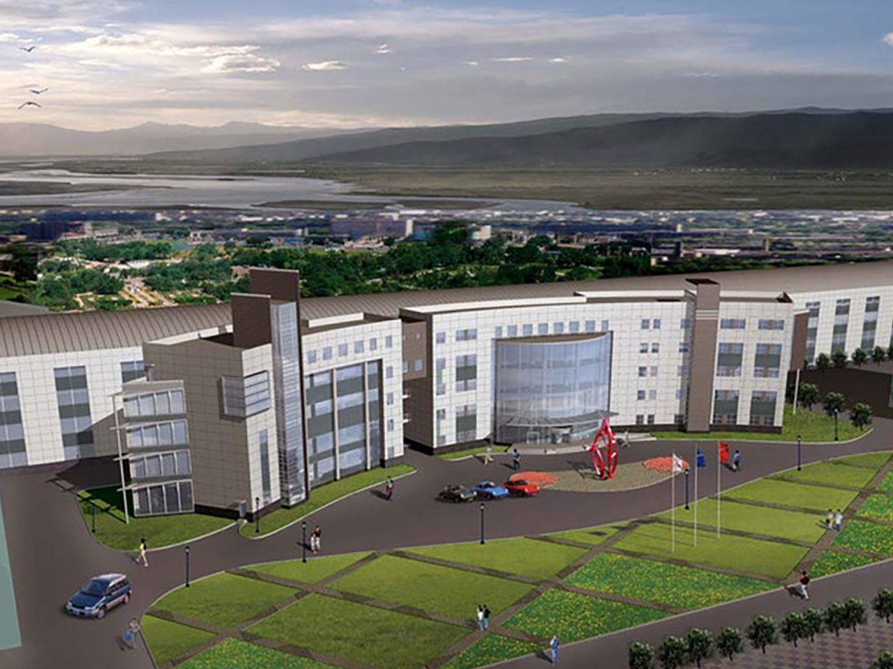 科技園項(xiàng)目一期總建筑面積約22.5萬平方米,包含6棟研發(fā)樓和2層地下車庫(kù)(地下共3層,一二期地下相互聯(lián)通),還設(shè)有下沉廣場(chǎng)和商鋪,敞亮的下沉廣場(chǎng)將所有建筑連在了一起。T6樓設(shè)置了戶外屋頂花園,特別鋪設(shè)